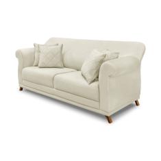 Sofá 3 Lugares Pé de Madeira Julieta 220 cm Veludo Bege S04 - D'Rossi