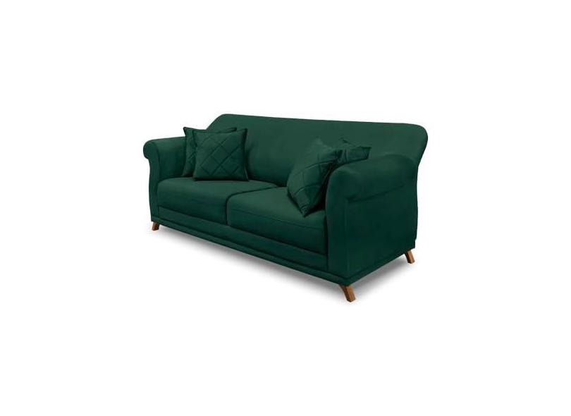 Sofá 3 Lugares Pé de Madeira Julieta 220 cm Veludo Verde S04 - D'Rossi