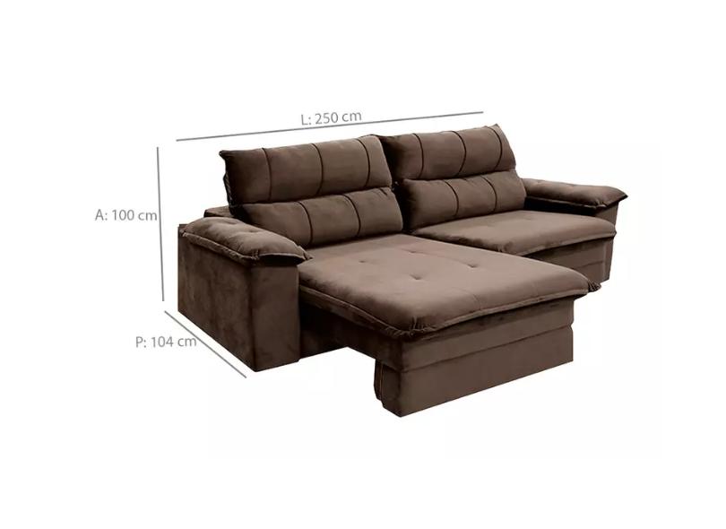Sofá 3 lugares Reclinável Retrátil Suede Daniel 250cm Gazin