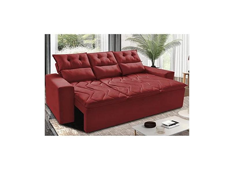 Sofá 3 Lugares Retrátil e Reclinável 2,00m Cama Inbox Smal com bordado pantográfico Suede Vermelho