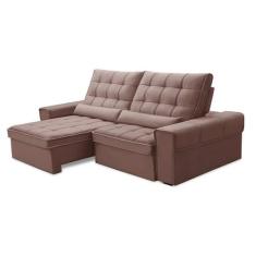 Sofá 3 Lugares Retrátil e Reclinável Alasca Veludo Rosê - Ferguile
