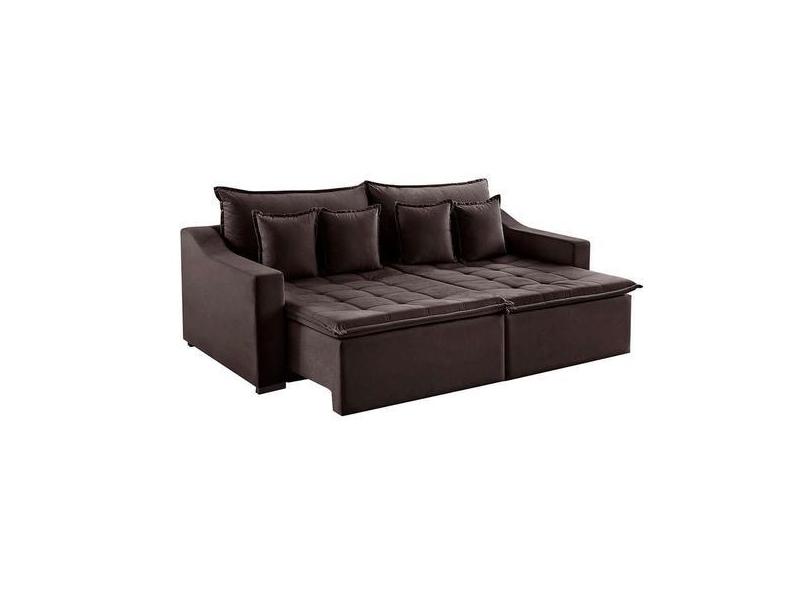 Sofá 3 Lugares Retrátil E Reclinável Amy Veludo Café 234 Cm - Estofart