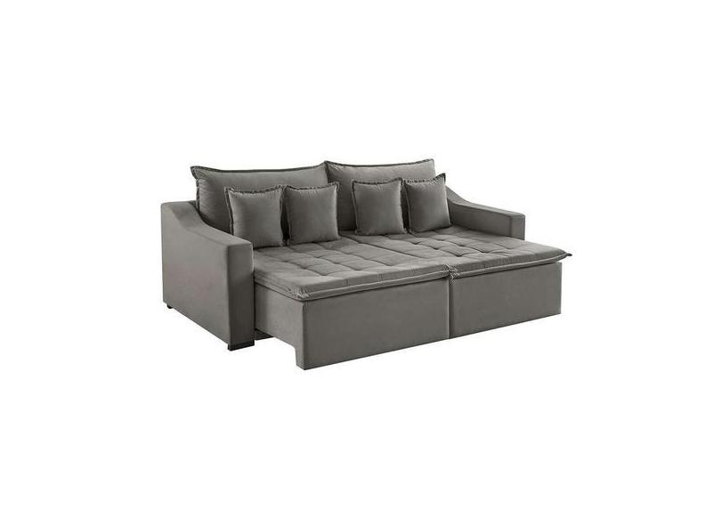 Sofá 3 Lugares Retrátil E Reclinável Amy Veludo Cinza 234 Cm - Estofar