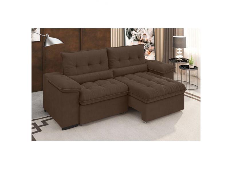 Sofá 3 Lugares Retrátil e Reclinável Arezzo Veludo Marrom