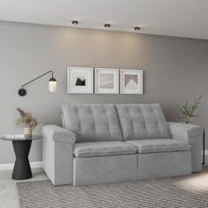 Sofá 3 Lugares Retrátil E Reclinável Arraial Veludo Cinza 230 Cm - Mob