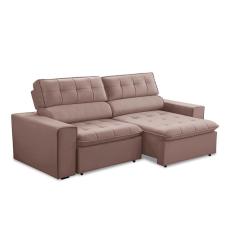 Sofá 3 Lugares Retrátil e Reclinável Atenas Veludo Rosê