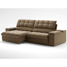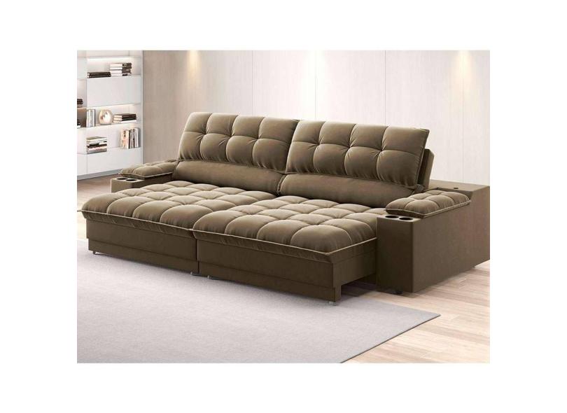 sofá 3 lugares retrátil e reclinável helen com usb e porta-copos veludo castor 230 cm