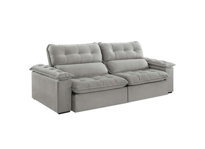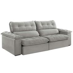 Sofá 3 Lugares Retrátil e Reclinável Jobi Veludo Cinza Prateado 234 cm