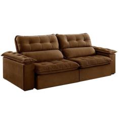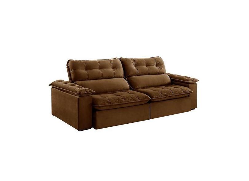 Sofá 3 Lugares Retrátil e Reclinável Jobi Veludo Marrom 234 cm - Estof