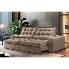 Sofá 3 Lugares Retrátil e Reclinável Orion 2.30m Veludo Palha Móveis Mix