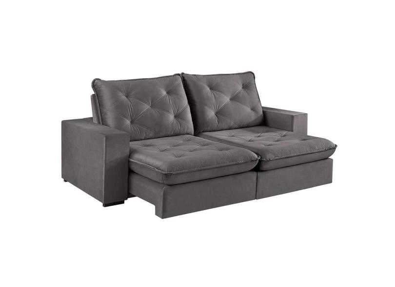 Sofá 3 Lugares Retrátil E Reclinável Solar Veludo Cinza 190 Cm
