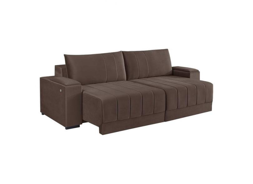 Sofá 3 Lugares Retrátil Línea com Kit USB Veludo Marrom 230cm