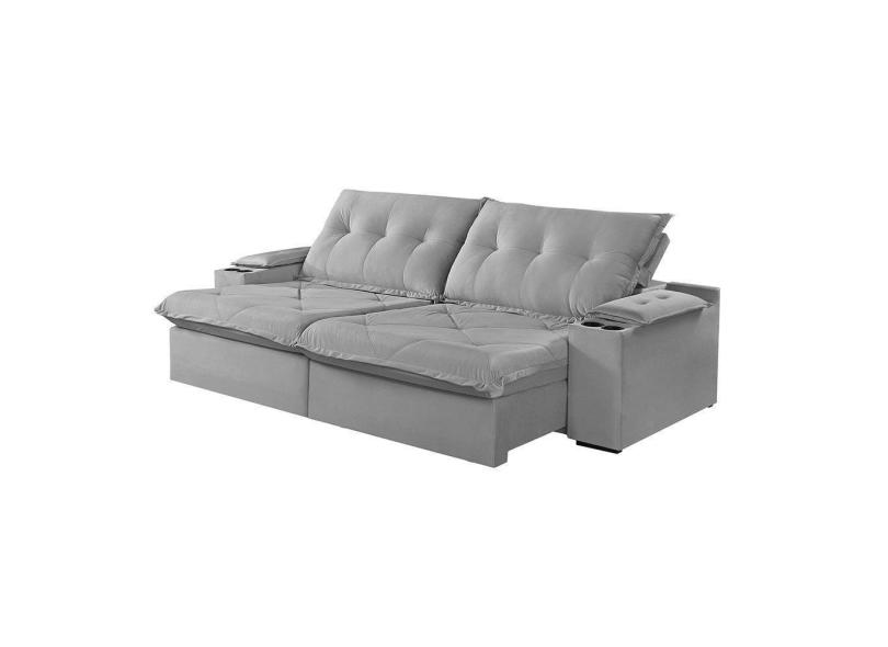 Sofá 3 Lugares Retrátil Martins M-163 Com Acessórios Veludo Cinza