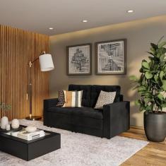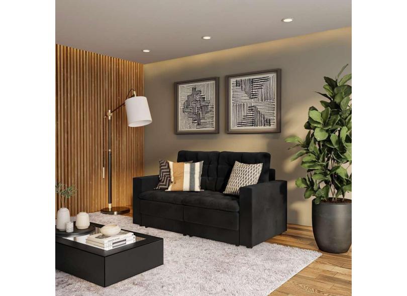 Sofá 3 Lugares Retrátil Nuremberga Suede Preto