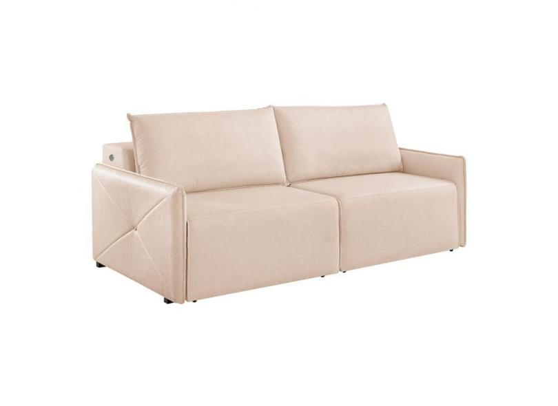 Sofá 3 Lugares Retrátil Urban com USB Linho Bege Claro 200 cm