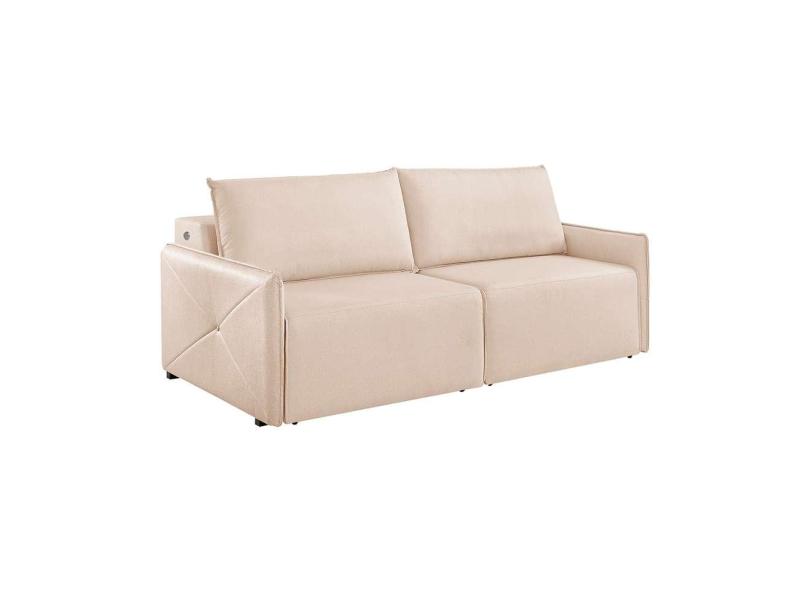 Sofá 3 Lugares Retrátil Urban com USB Linho Bege Claro 220 cm