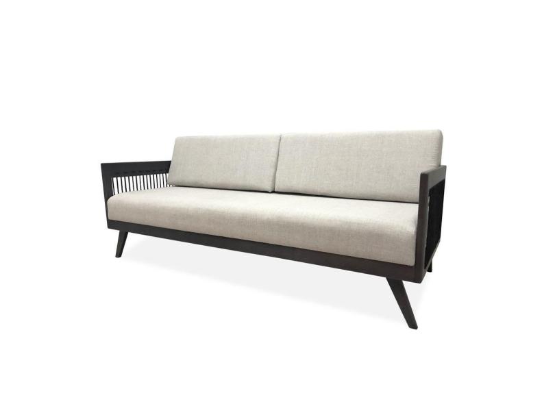 Sofá 3 Lugares Saibi Ozki 200Cm Poliéster Bege Madeira Eucalipto Amêndoa Corda Náutica Plana Poliést