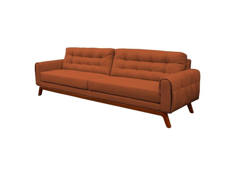 Sofá 3 Lugares Sala De Estar Eros 210 Cm Veludo Telha Base Fixa - Gran Belo