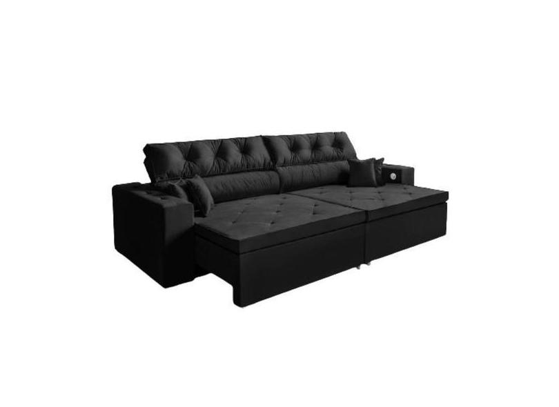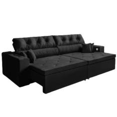 Sofá 3 Lugares Smart 2,02 Metros Preto Retrátil Reclinável Tecnologia