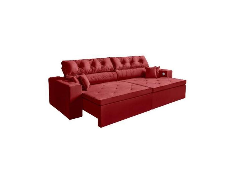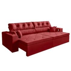 Sofá 3 Lugares Smart 2,02 Metros Vermelho Retrátil Reclinável Tecnolog