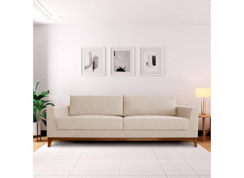 Sofá 4 Lugares 240cm Movie Estilo Moderno Linho Pés em Madeira Maciça Bege/Cinza Claro