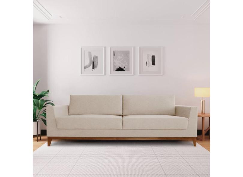 Sofá 4 Lugares 240cm Movie Estilo Moderno Linho Pés em Madeira Maciça