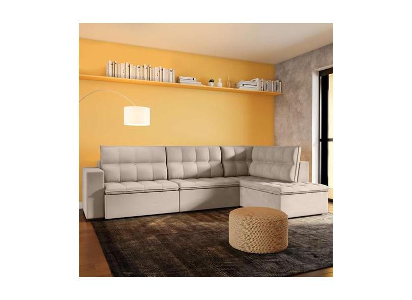Sofá 4 Lugares Athens com Chaise Direito Veludo Marfim - Mobly
