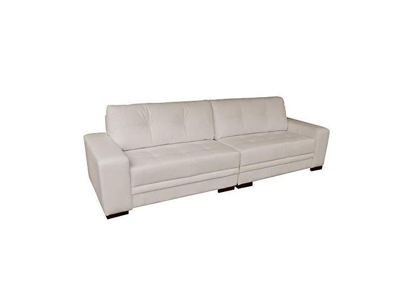 Sofá 4 Lugares Bipartido Sala de Estar Milano 260cm Couro Off White - Gran Belo