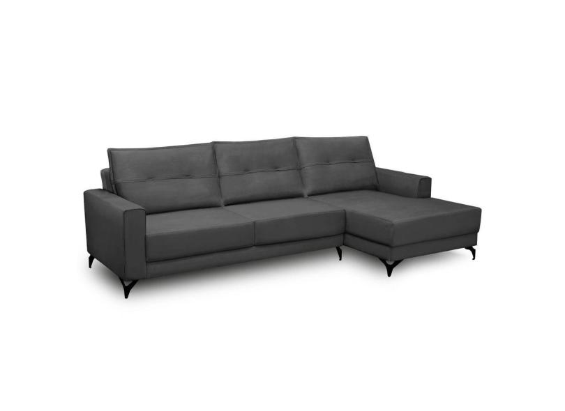 Sofá 4 Lugares Com Chaise Direito 285Cm Soreh F05 Veludo Grafite