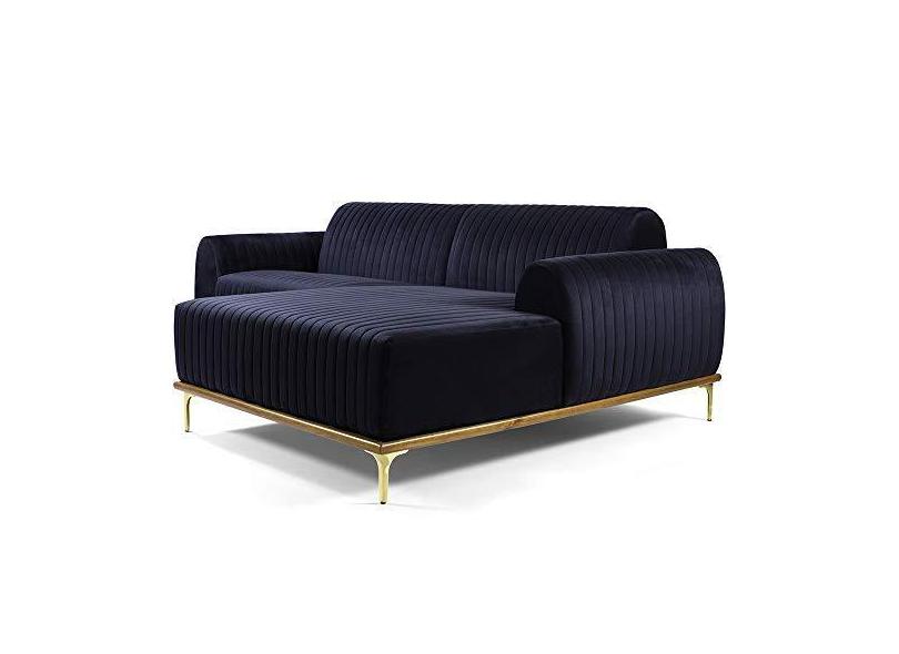 Sofá 4 Lugares com Chaise Direito Para Sala Molino 255 cm D02 Veludo Azul Marinho C-287 - Lyam Decor