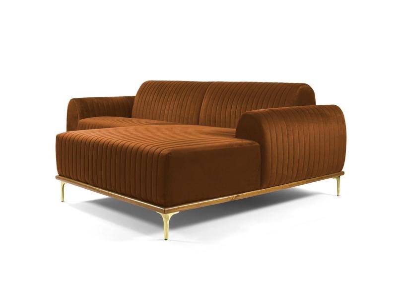 Sofá 4 Lugares com Chaise Direito Para Sala Molino 265 cm D02 Veludo Telha C-262 - Lyam Decor