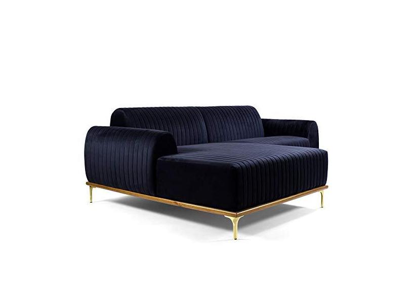 Sofá 4 Lugares com Chaise Esquerdo Para Sala Molino 265cm D02 Veludo Azul Marinho C-287 - Lyam Decor