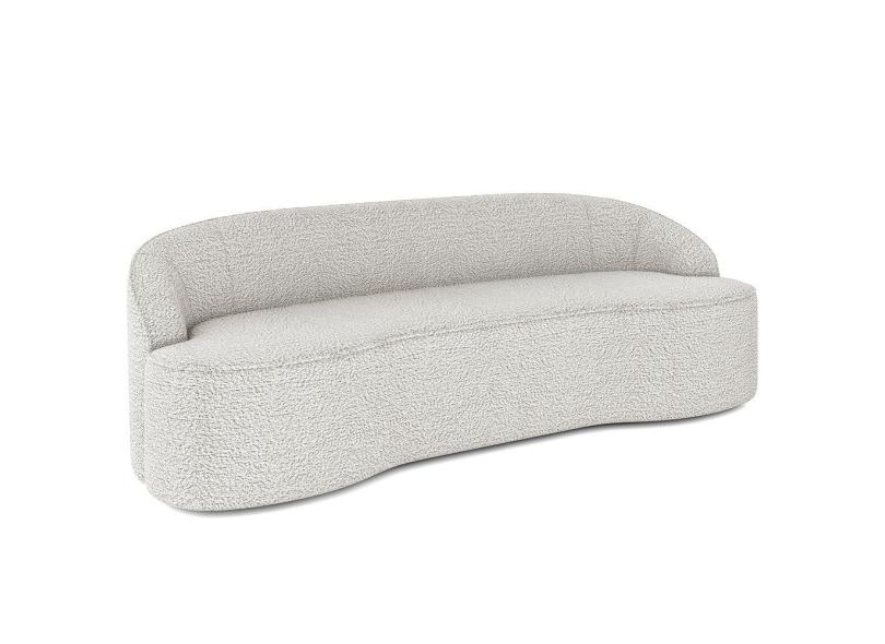 Sofá 4 Lugares Curvo Sala de Estar Living Lótus D02 Bouclê Creme 230 cm B-54 - Lyam Decor
