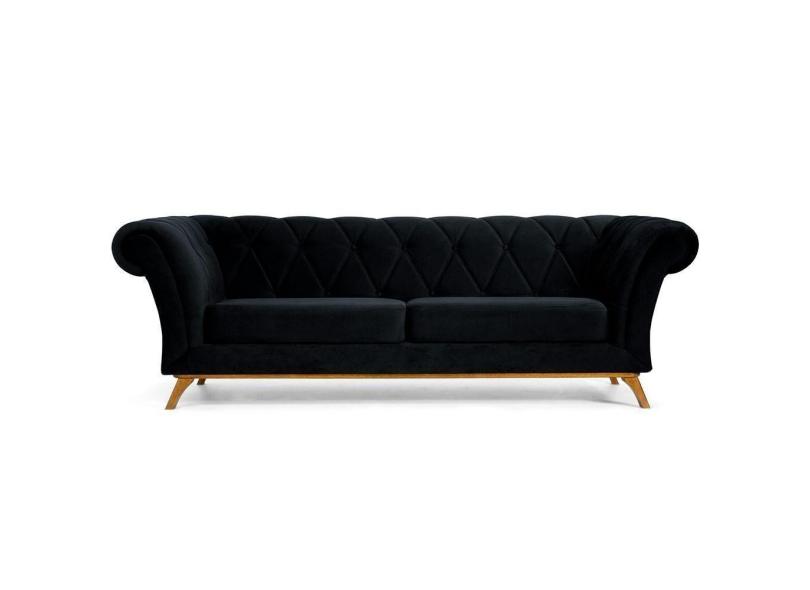 Sofá 4 Lugares Império 280 Cm Veludo Preto C-300