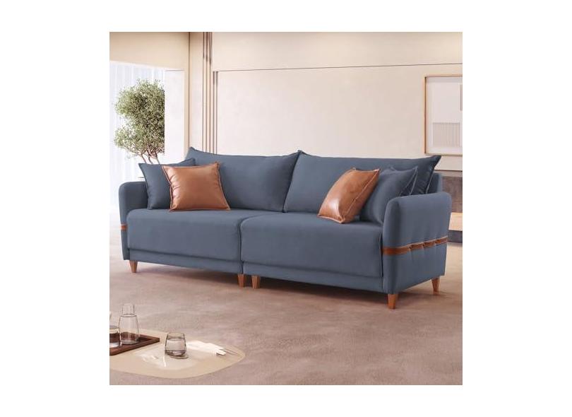 Sofá 4 Lugares Living 225cm Canela Azul/Marrom