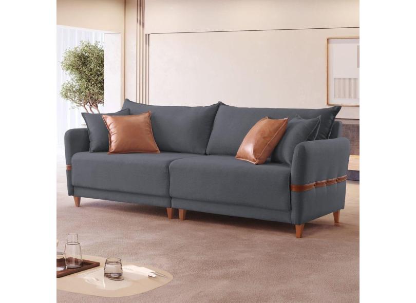 Sofá 4 Lugares Living 225cm Canela Cinza/Marrom