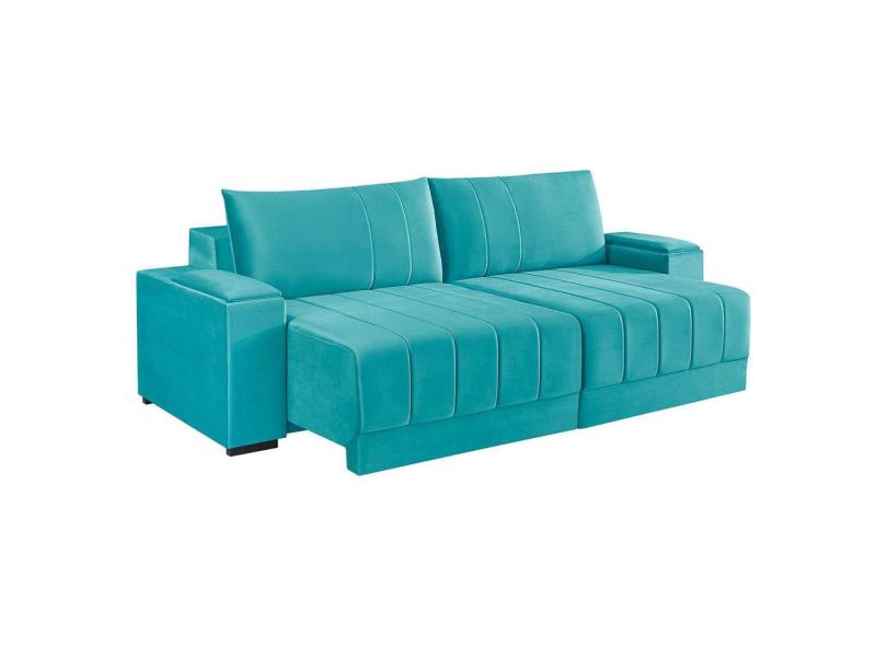Sofá 4 Lugares Retrátil Baú Línea Veludo Verde 250cm