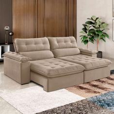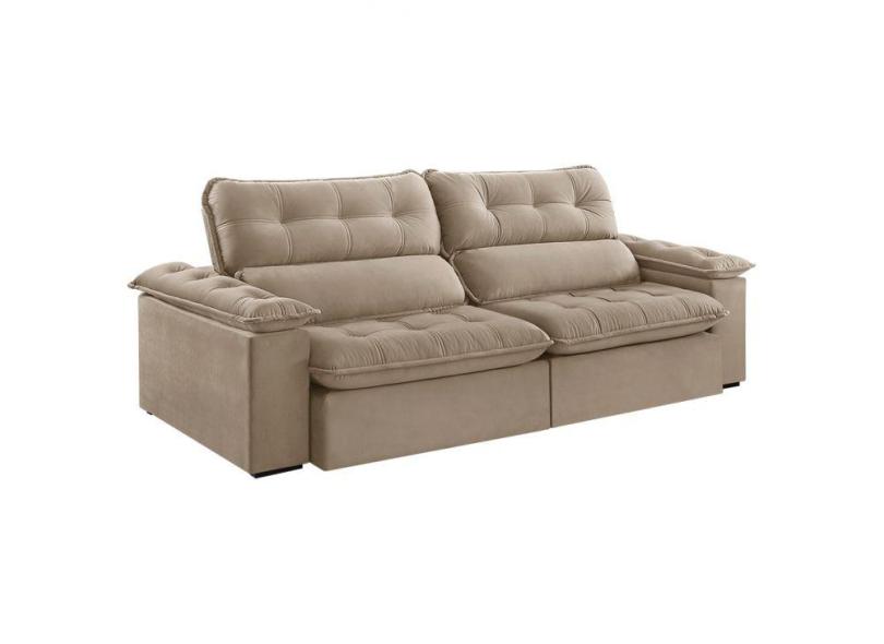 Sofá 4 Lugares Retrátil e Reclinável Jobi Veludo Bege Natural 254 cm