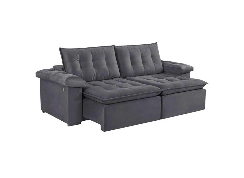 Sofá 4 Lugares Retrátil Itaguaí Prime Com Entrada Usb Veludo Cinza