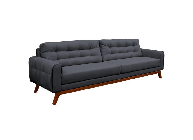 Sofá 4 Lugares Sala De Estar Eros 260 Cm Veludo Grafite Base Fixa - Gran Belo