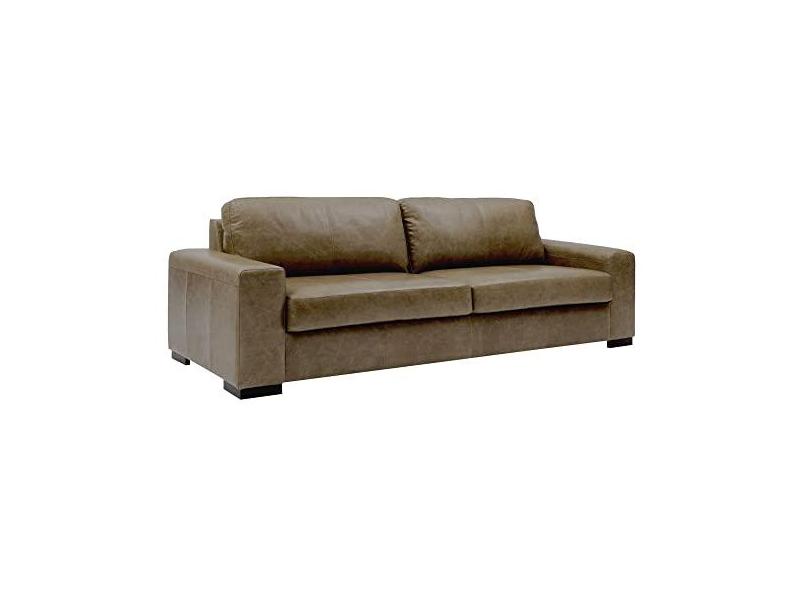 Sofá 4 Lugares Sala de Estar Pés Madeira Aisla 240 cm Couro Marrom Claro - Gran Belo