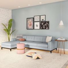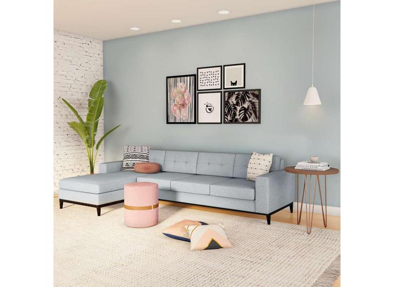 Sofá 4 Lugares Surprised com Chaise Esquerdo Pés e Base em Madeira Linho Cotton Cinza