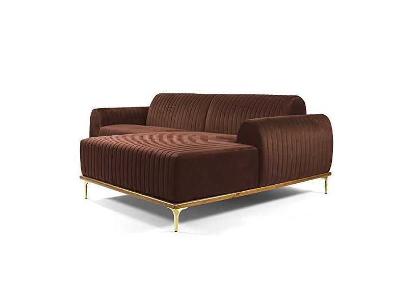 Sofá 5 Lugares com Chaise Direito Para Sala Molino 300 cm D02 Veludo Marrom C-276 - Lyam Decor