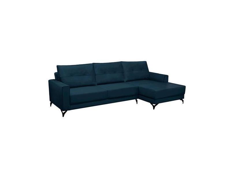 Sofá 5 Lugares Heros com Chaise Direito Veludo Azul - Ferguile