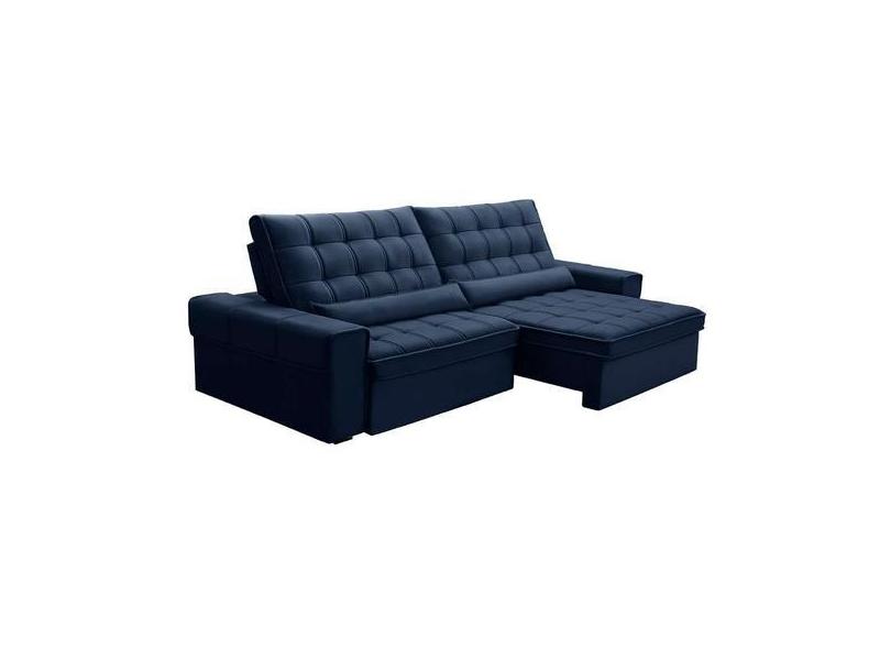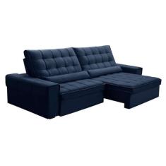 Sofá 5 Lugares Retrátil e Reclinável Alasca Veludo Azul - Ferguile