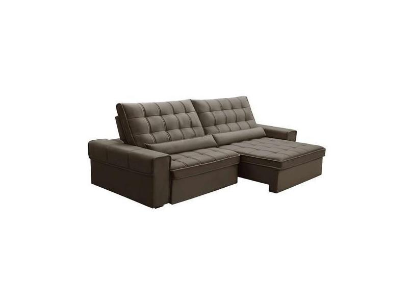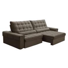 Sofá 5 Lugares Retrátil E Reclinável Alasca Veludo Castor - Ferguile