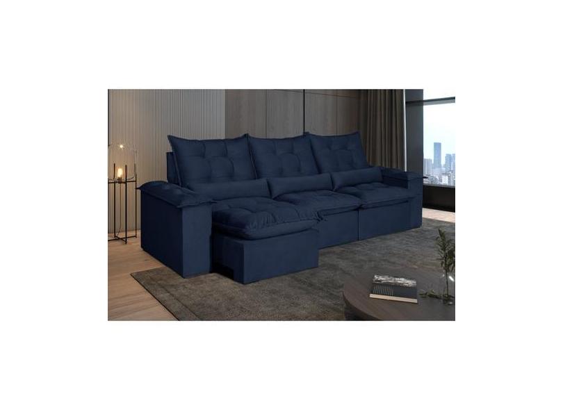 Sofá 5 Lugares Retrátil E Reclinável Atlantis Veludo Azul - Decor Lar