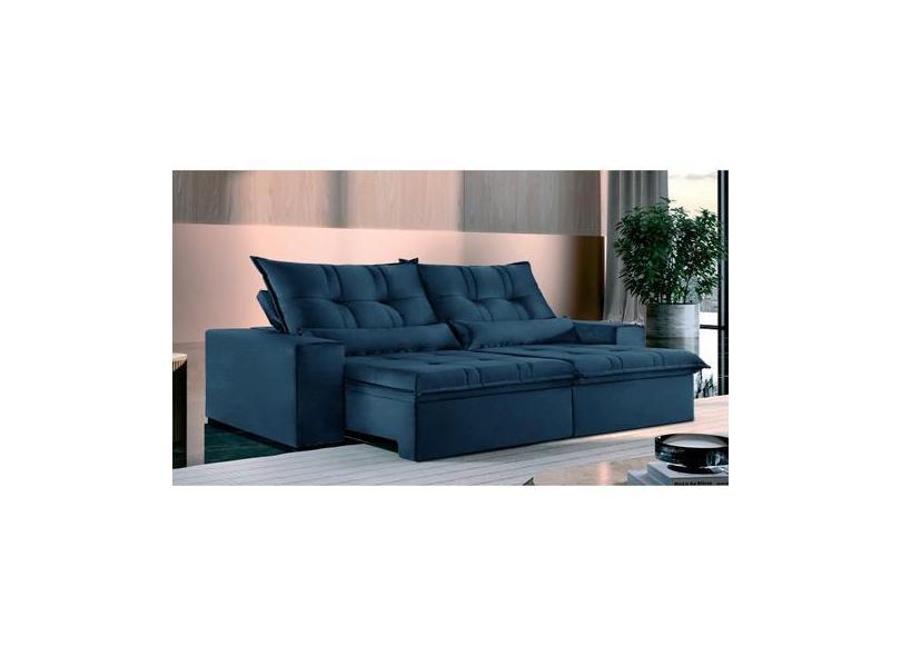 Sofá 5 Lugares Retrátil e Reclinável Galícia Veludo com Molas Azul - D