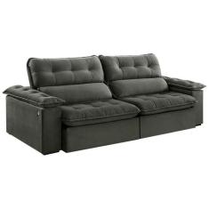 Sofá 5 Lugares Retrátil e Reclinável Jobi com USB Veludo Cinza 297 cm