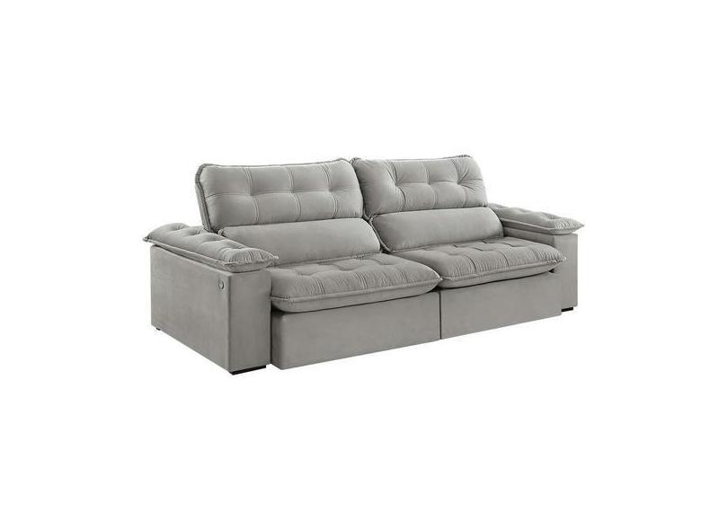 Sofá 5 Lugares Retrátil E Reclinável Jobi Com Usb Veludo Cinza Pratead